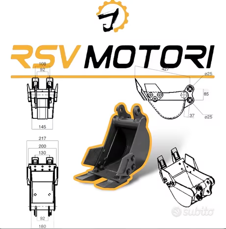 BENNA 20cm Per miniescavatori PERNI DA 25