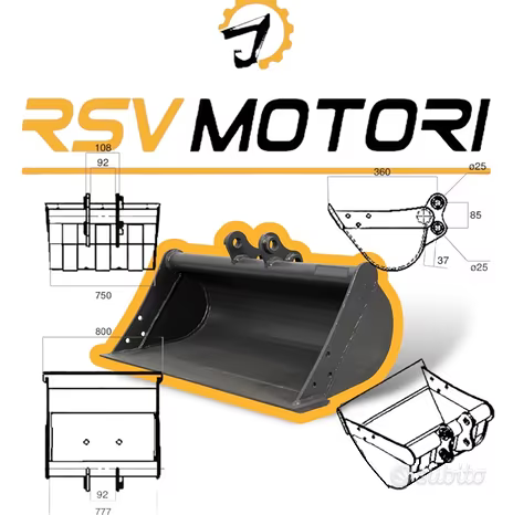 BENNA 80cm, Per miniescavatori PERNI DA 25